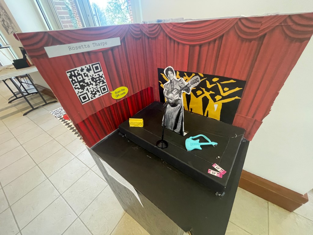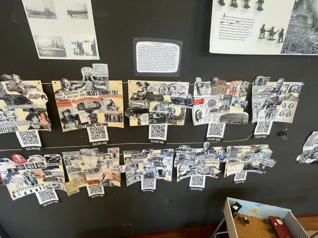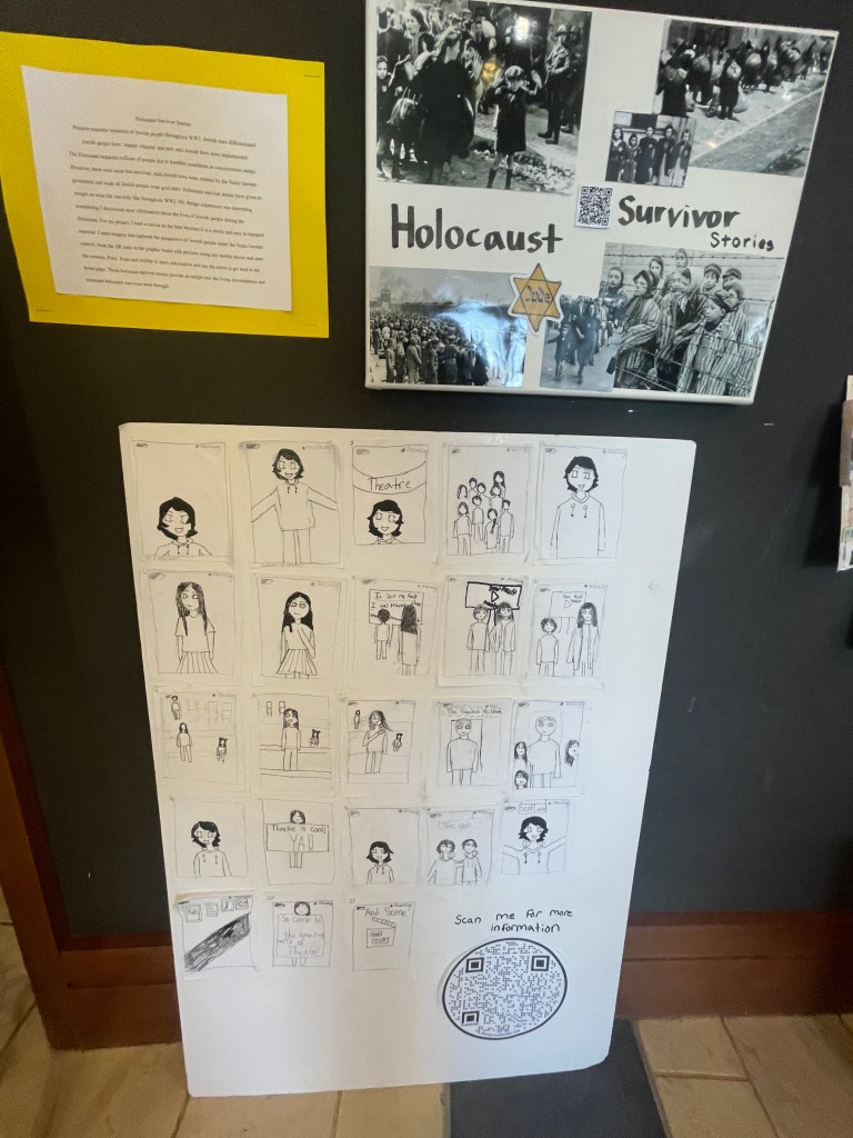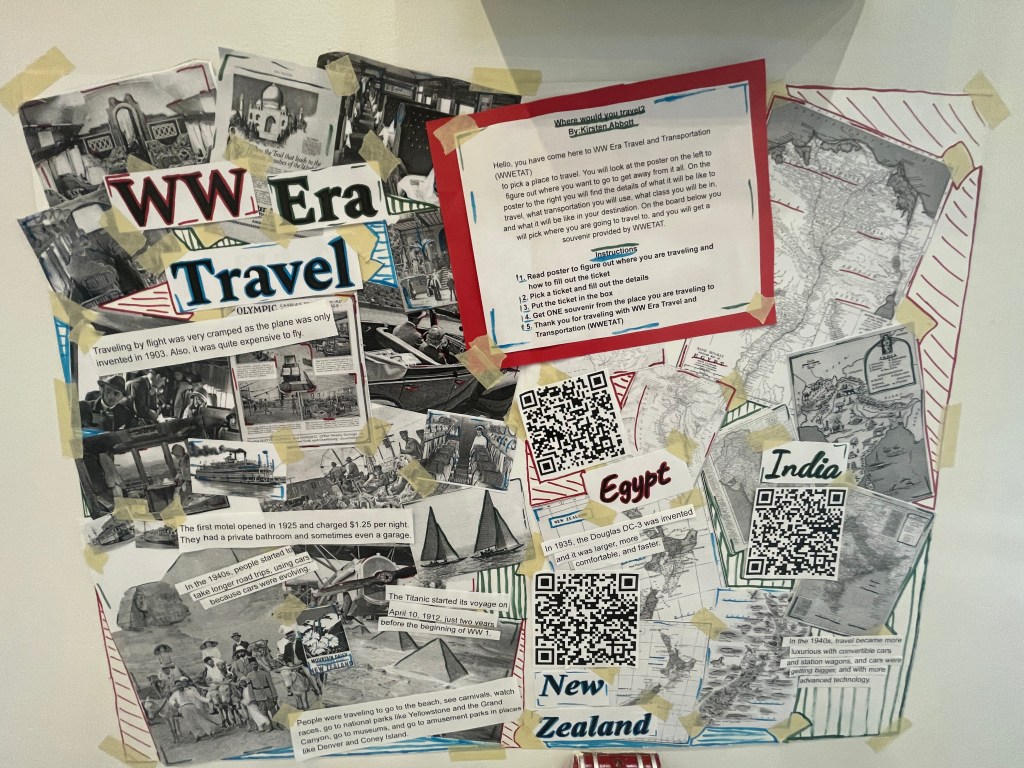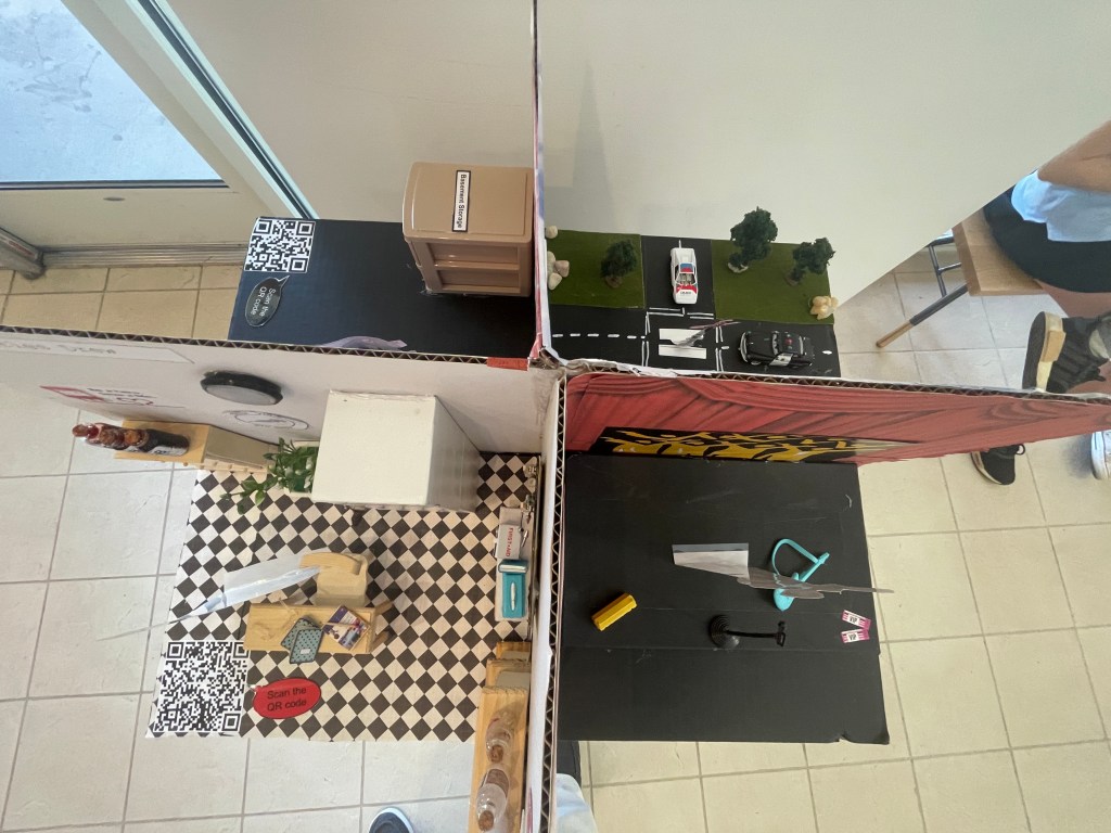 For this experience, students were tasked with creating a museum-quality installation in our Middle School Art Gallery. Using the principles of Design Thinking, the focus was on the user experience and prototypes were drafted and developed using empathetic interviews to assess the needs and curiosities of the exhibition’s audience. Each experience was intended to have some element of user interaction, and the assessment had three parts: the User Experience (expressed through a Storyboard and video), the Artifact itself, and a Plaque detailing the Artist’s Statement, Design Process, and User Instructions. Here are a number of examples of student designs — many of which included QR codes to dive deeper into the experience and learning!