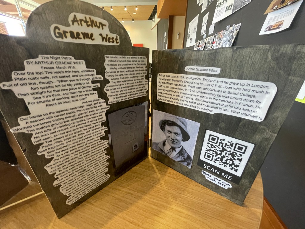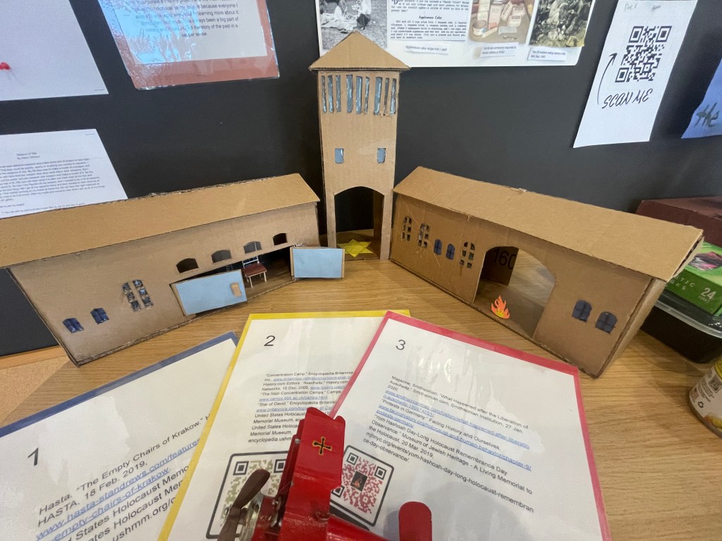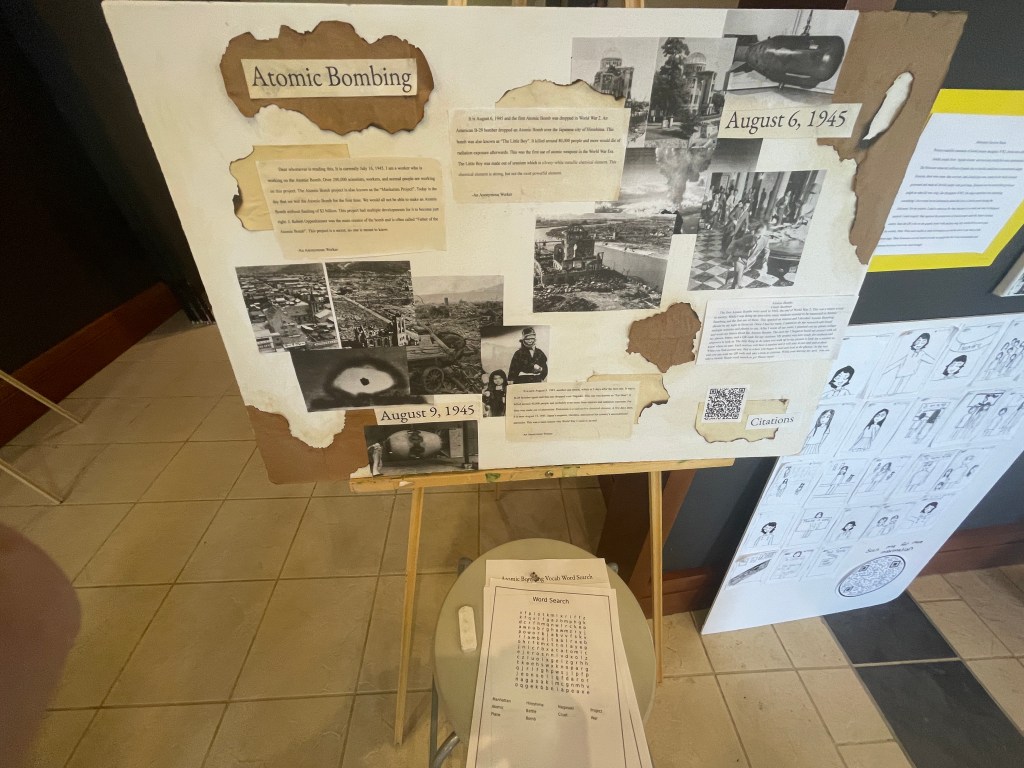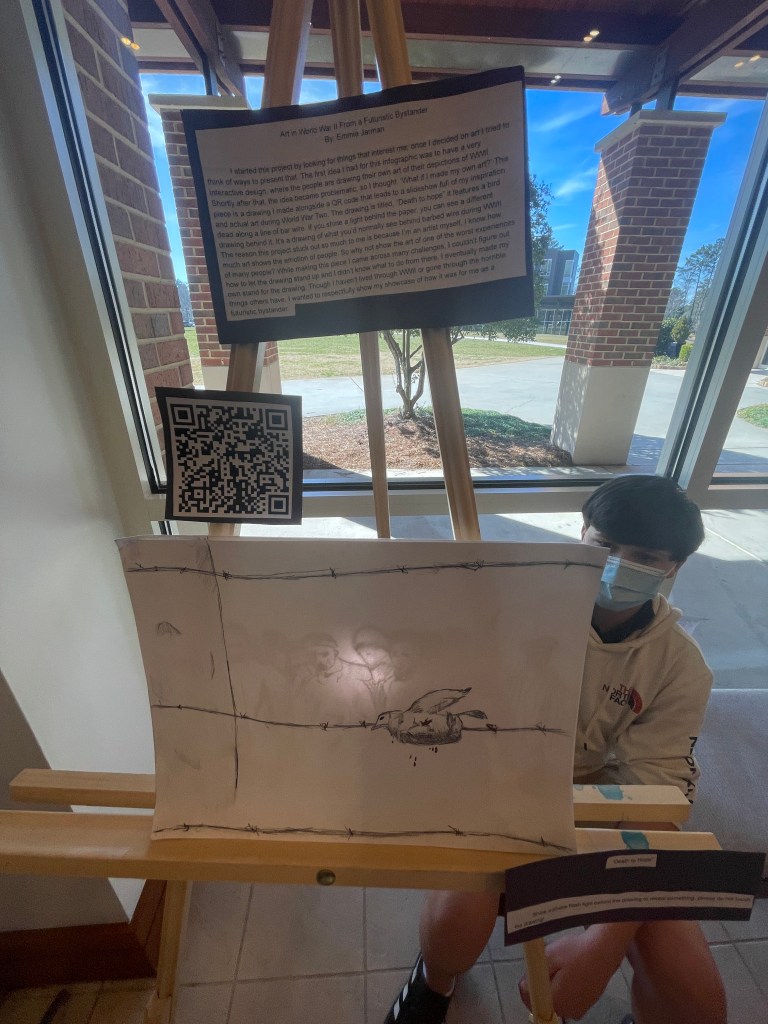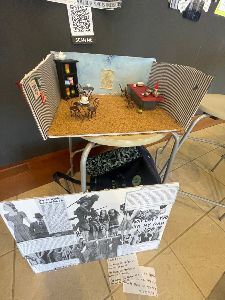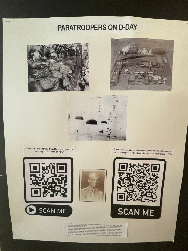 For this experience, students were tasked with creating a museum-quality installation in our Middle School Art Gallery. Using the principles of Design Thinking, the focus was on the user experience and prototypes were drafted and developed using empathetic interviews to assess the needs and curiosities of the exhibition’s audience. Each experience was intended to have some element of user interaction, and the assessment had three parts: the User Experience (expressed through a Storyboard and video), the Artifact itself, and a Plaque detailing the Artist’s Statement, Design Process, and User Instructions. Here are a number of examples of student designs — many of which included QR codes to dive deeper into the experience and learning!